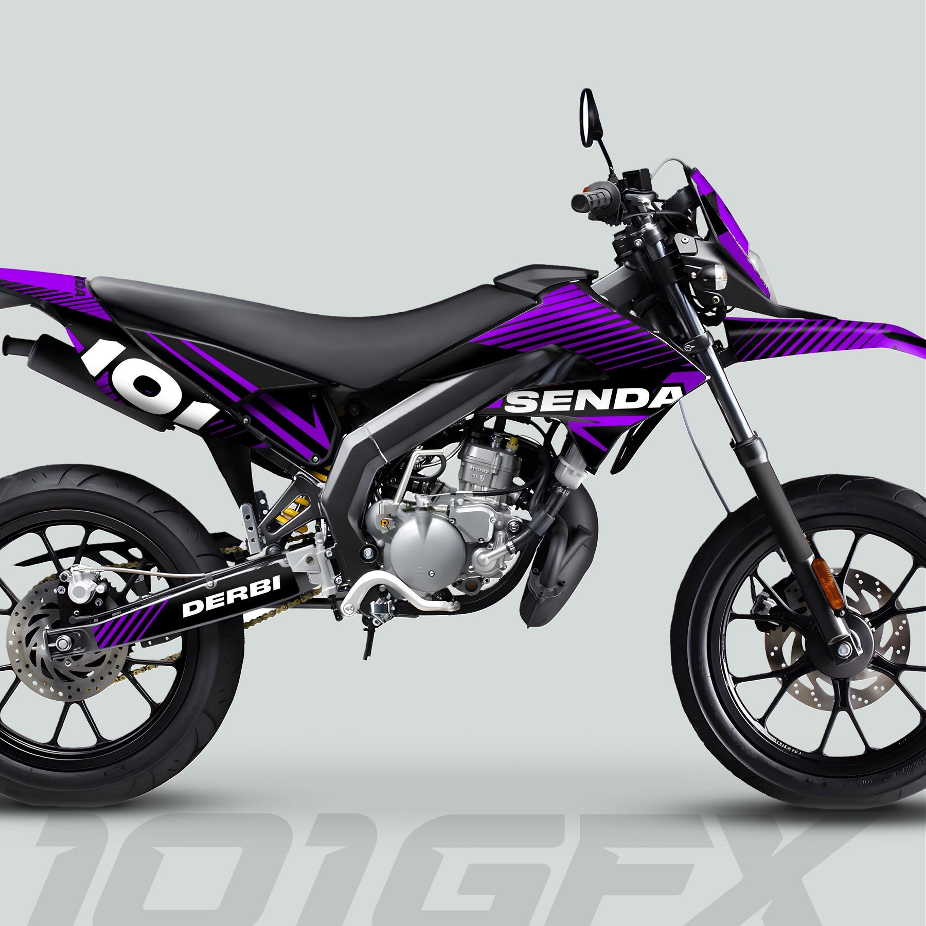 The Derbi Senda Graphics Kit X-Treme 2011-2017 in striking black and purple is the ultimate upgrade for your motorcycle. Designed specifically for the Derbi Senda, this graphics kit not only enhances the aesthetics of your bike but also provides excellent durability. Perfect for riders looking to make a statement, this kit features high-quality derbi decals that are resistant to fading and wear.