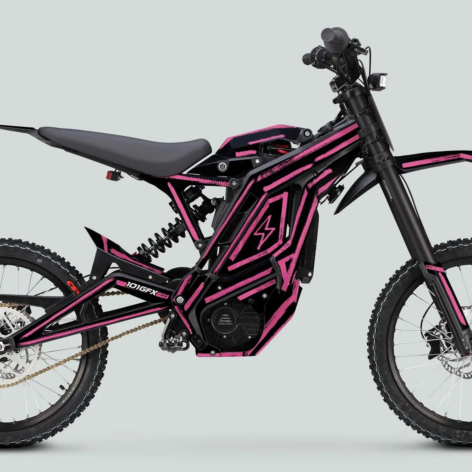E Ride Pro SS Graphics Kit BRUSH Black Pink is the ultimate vehicle decor solution for those who want to elevate their ride's aesthetics. Crafted specifically for the E Ride Pro series, this graphics kit features bold black and pink hues that instantly transform your vehicle into a head-turning masterpiece.