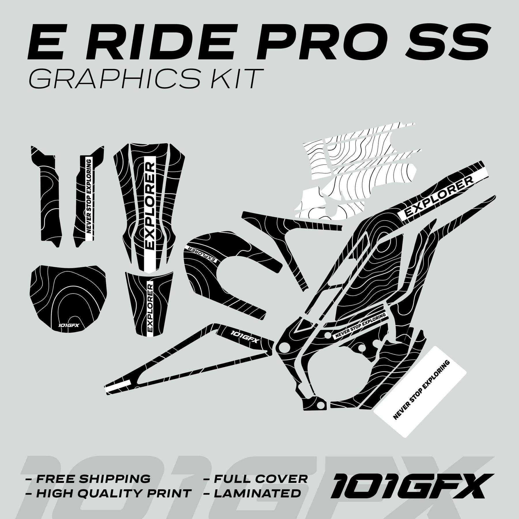 Elevate your ride's style and protection today with the E Ride Pro SS Graphics Kit EXPLORER. Don't miss out on an opportunity to stand out on the road!