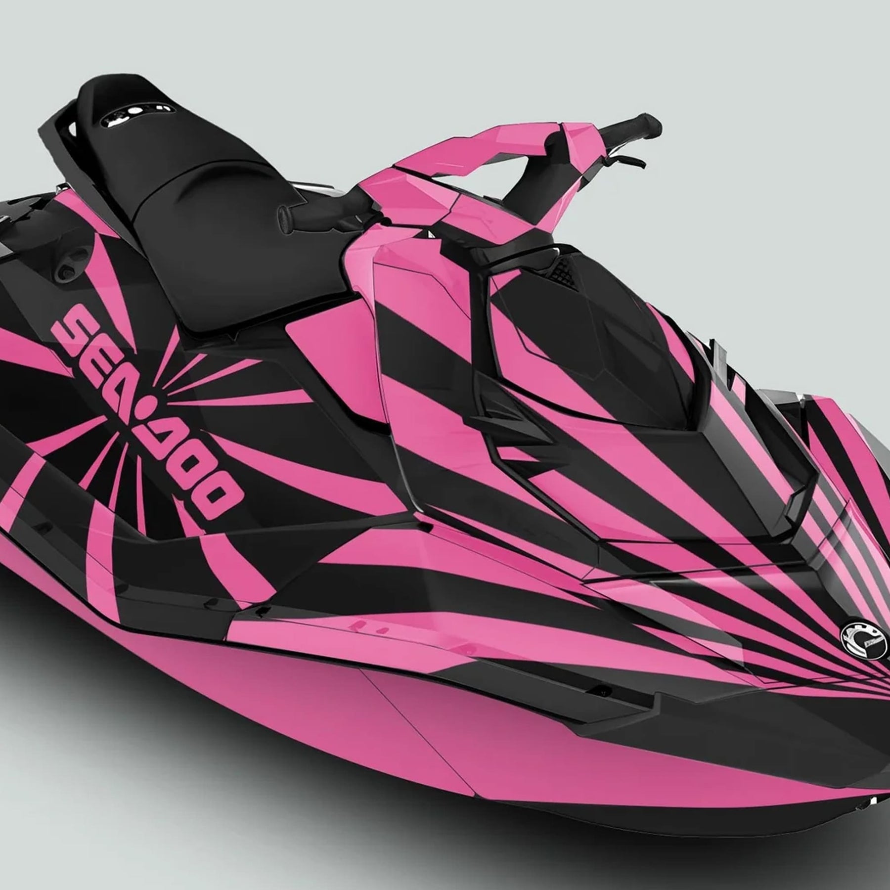 Elevate your Sea Doo Spark with the stunning Sea Doo Spark Graphics kit RAYS BLACK PINK. Designed for those who crave individuality, this graphics kit offers a vibrant, eye-catching design that sets your watercraft apart from the rest. The bold black and pink hues not only enhance the aesthetics but also protect your Sea Doo from wear and tear, ensuring it looks great season after season.
