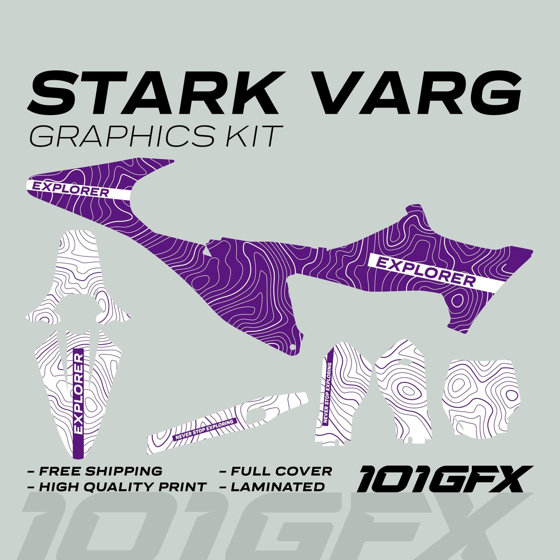 Stark Varg Graphics Kit EXPLORER PURPLE WHITE Decals Stickers