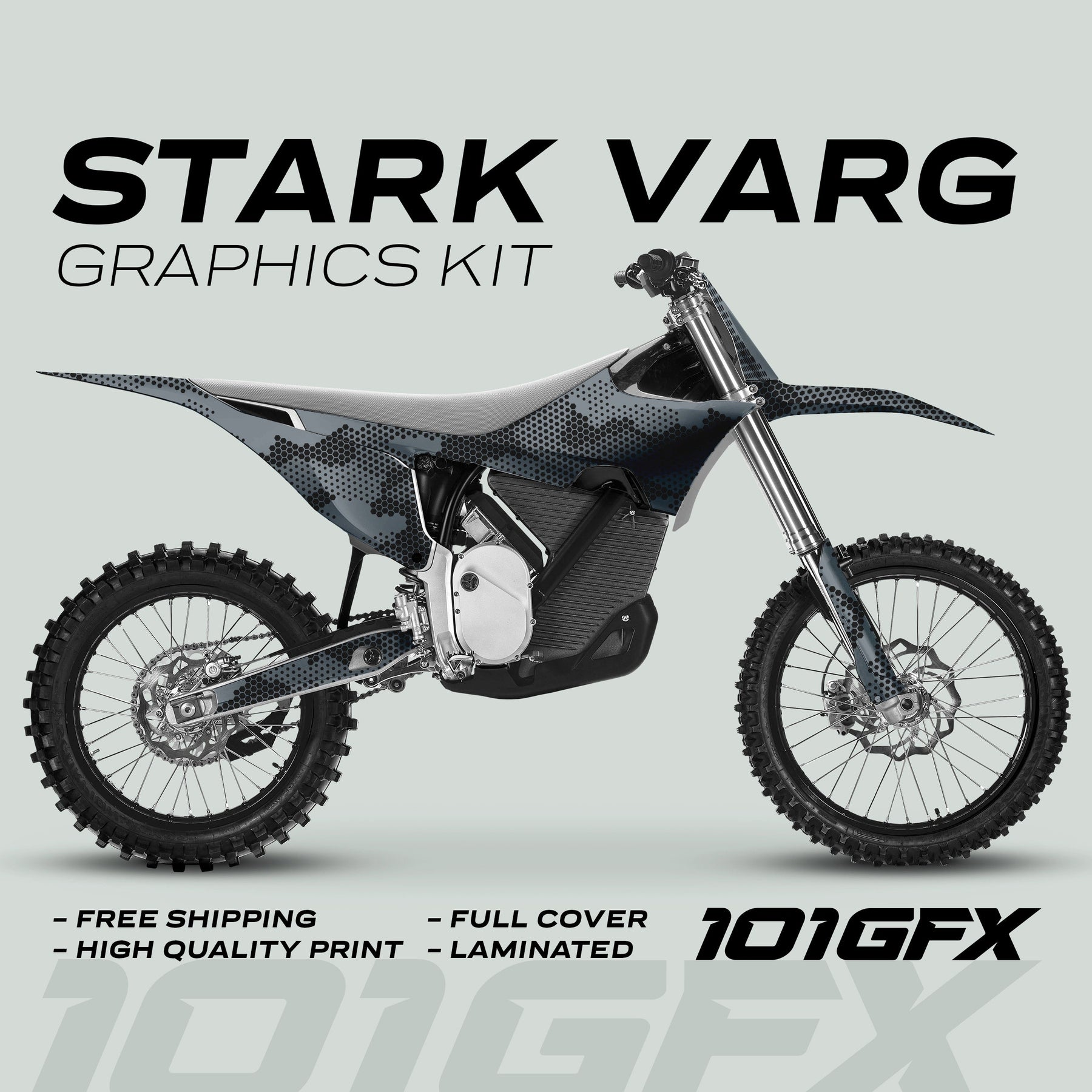 Transform your bike with the Stark Varg Graphics Kit HEXOCAM GREY Decals Stickers, designed for enthusiasts who appreciate quality and style. Made with durable laminated materials, these Stark decals feature a striking camo pattern that enhances your vehicle decor while providing superior protection against the elements. Enjoy free worldwide shipping on this premium graphics kit!