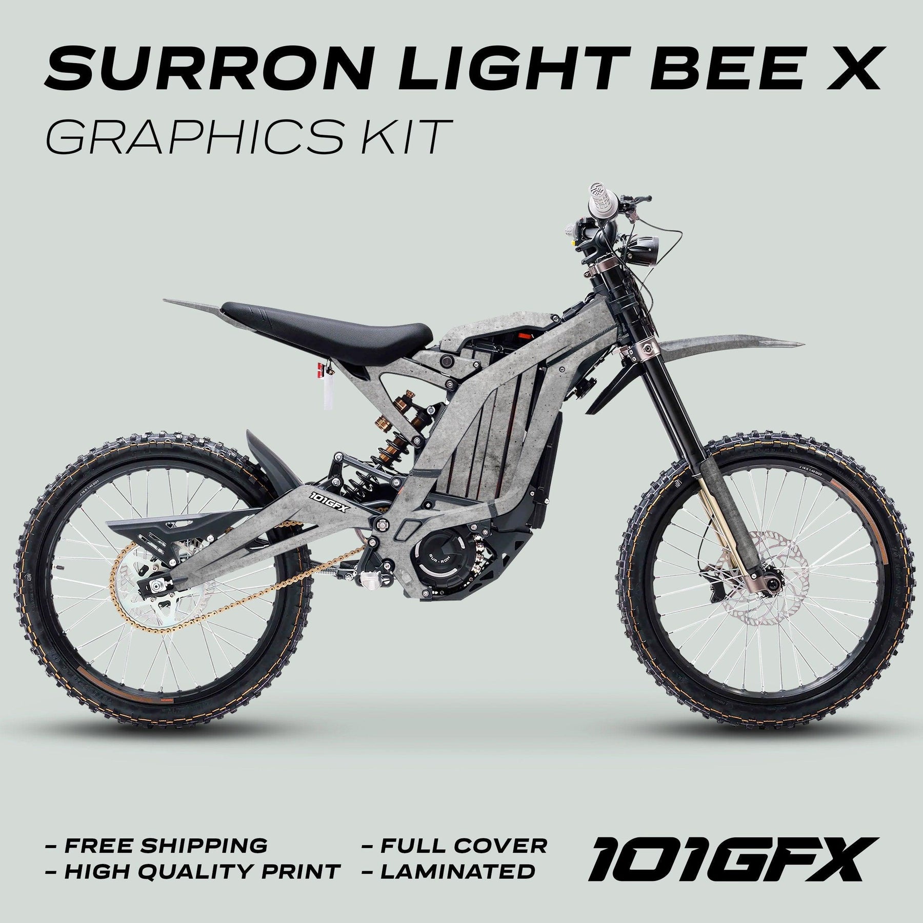 Transform your ride with the Surron Light Bee X Graphics Kit in stunning Concrete Grey. This custom graphics kit is designed to enhance your bike's aesthetic while providing durable, glossy decals that can withstand the rigors of any adventure. Perfect for those looking to personalize their Surron and stand out from the crowd, these Surron stickers elevate the urban look of your vehicle.