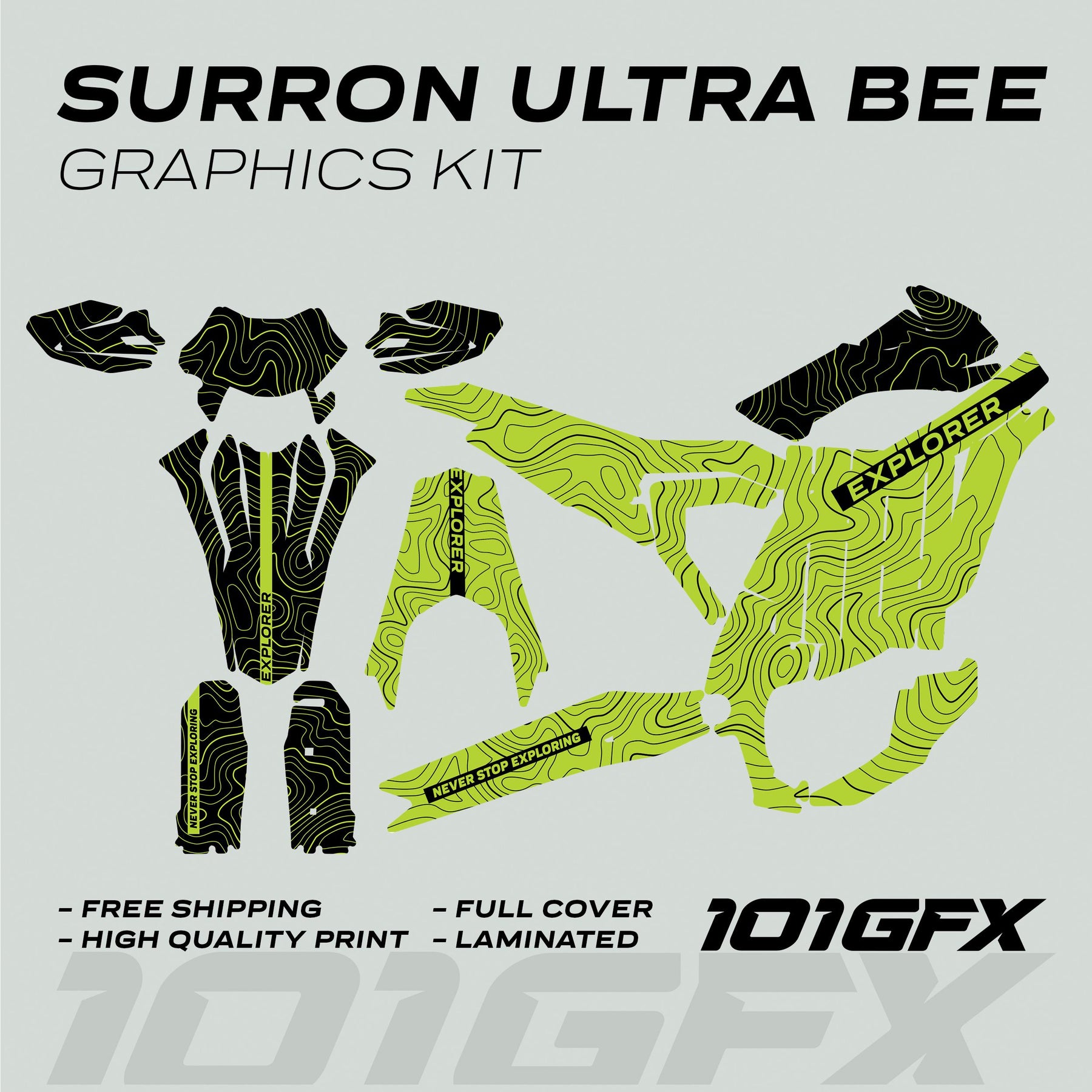 Surron Ultra Bee Graphics Kit EXPLORER GREEN BLACK