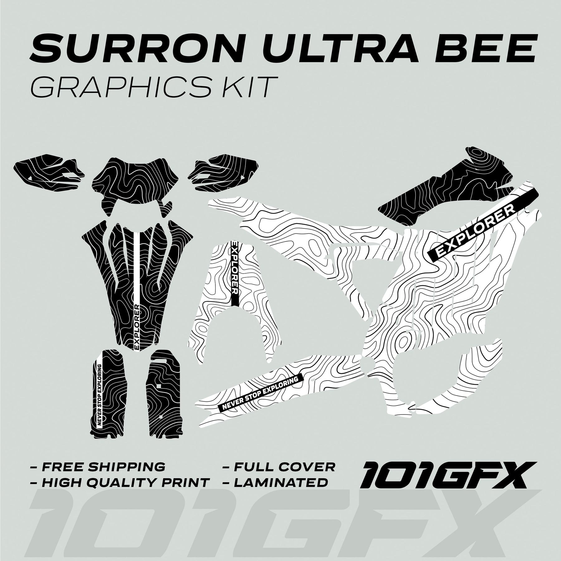 Surron Ultra Bee Graphics Kit EXPLORER WHITE BLACK