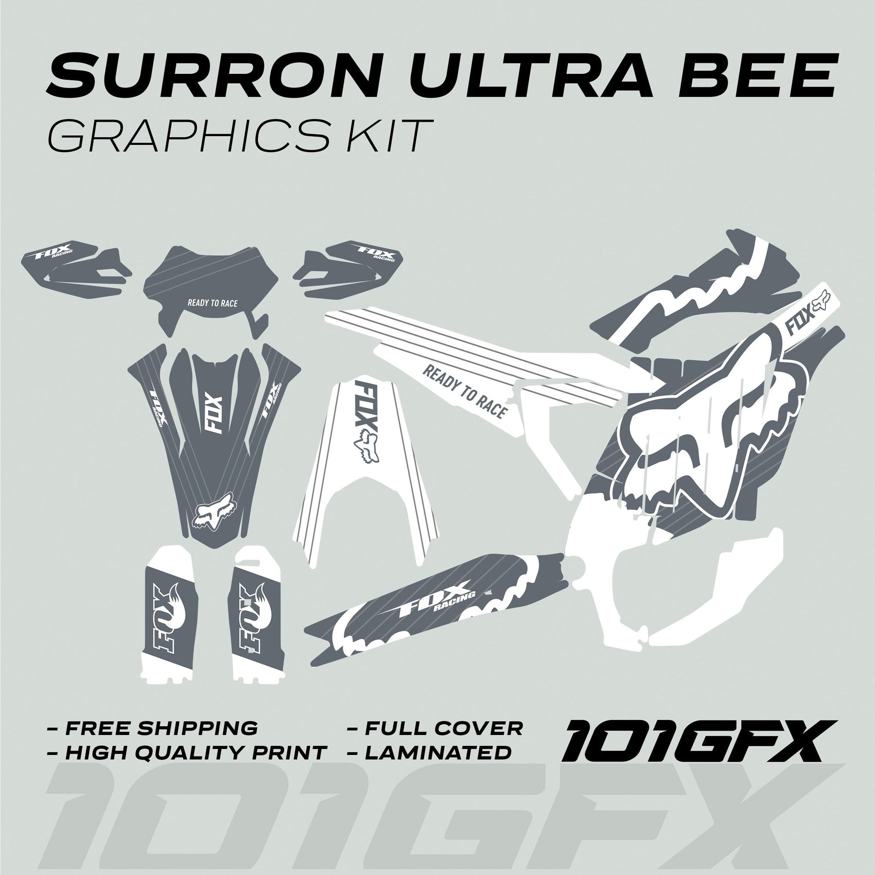 Surron Ultra Bee Graphics Kit FOX STRIPES Grey White