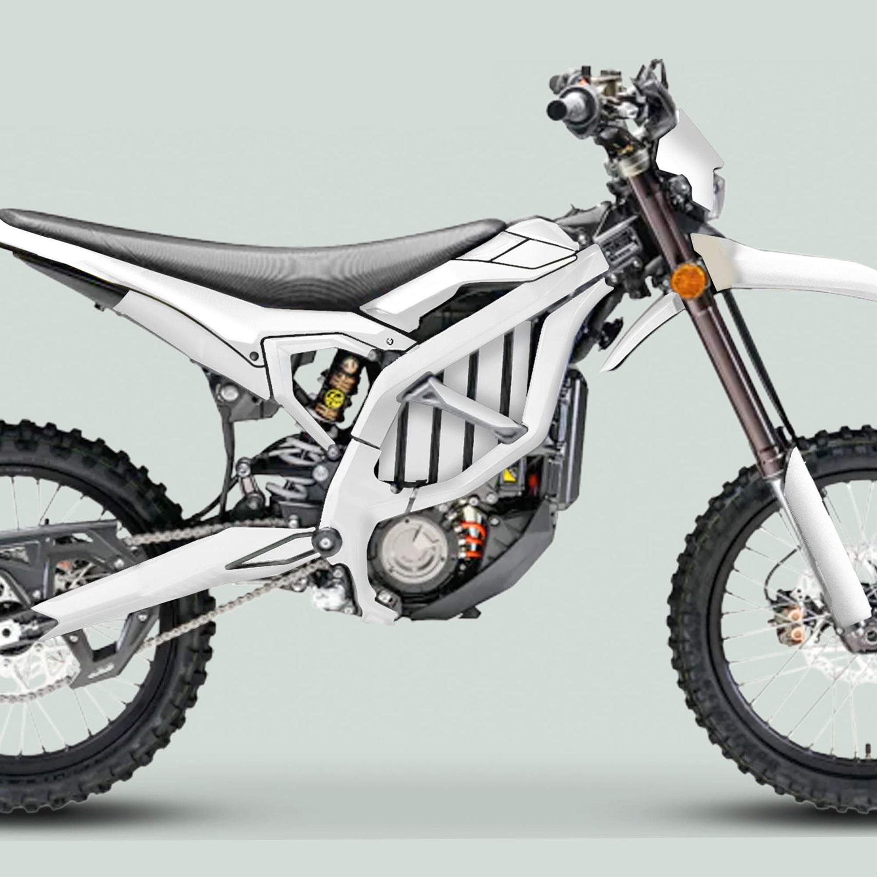 The Surron Ultra Bee Graphics Kit in a stunning solid color white is designed to elevate the look of your Surron Ultra Bee. This graphics kit is the perfect blend of style and durability, making it essential for any enthusiast looking to maintain, care for, or decorate their vehicle.
